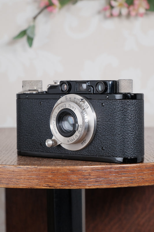 Near mint! 1933 BLACK LEITZ LEICA II with Nickel Elmar lens. Freshly Serviced CLA'd!