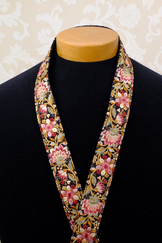 Colorful handmade vintage style camera strap, made of 50% embroidered silk and 50% cotton.