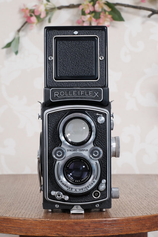 Near Mint! 1953 Rolleiflex with Synchro-Compur shutter & Coated lens. Freshly Serviced, CLA’d!