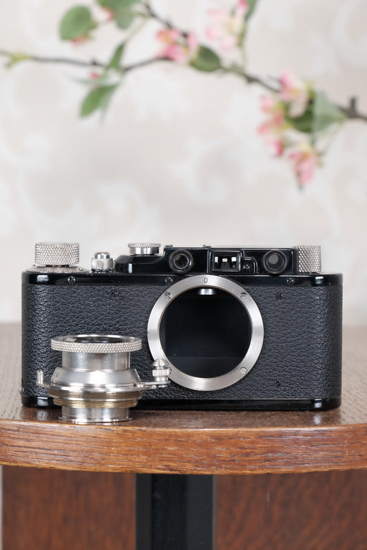 SUPERB! 1935 BLACK LEITZ LEICA II with Nickel lens and an original case, Freshly Serviced CLA'd!